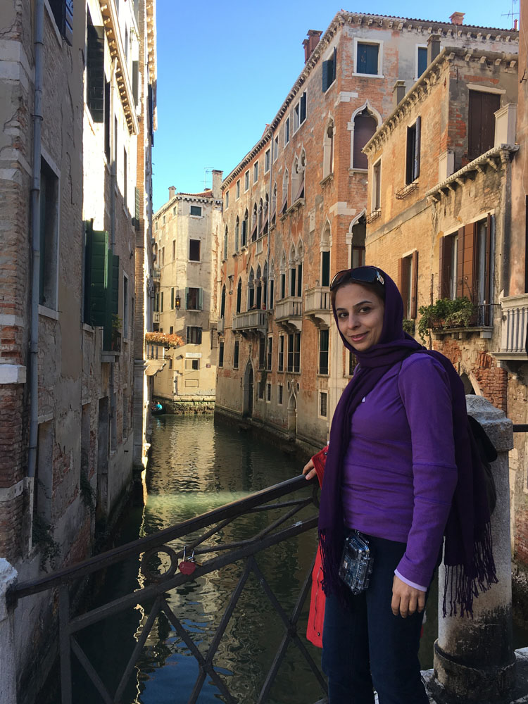 Maryam, one of the Iranian participants, mapping radiation data as she crosses a bridge in Venice.