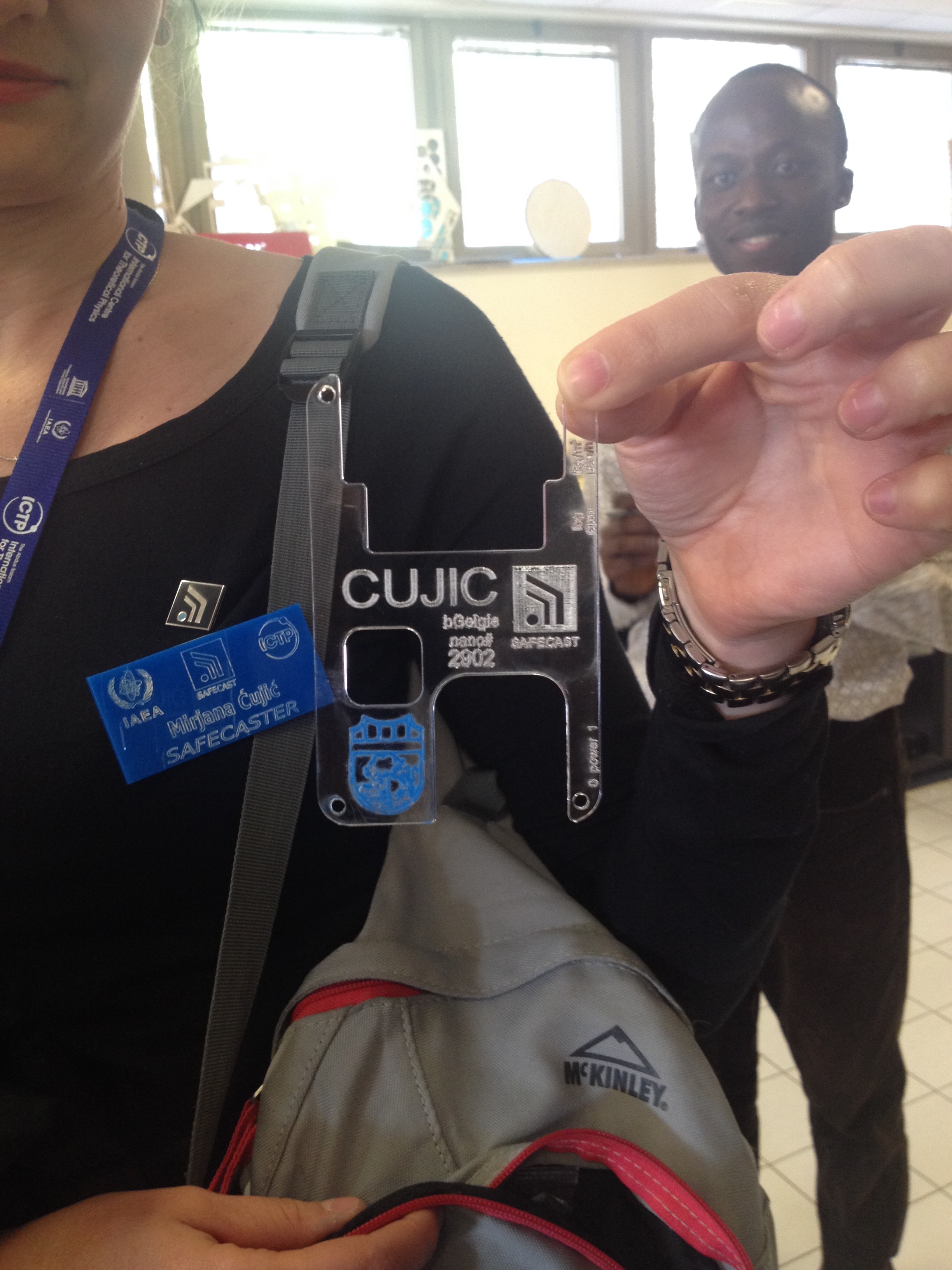 At the end of the week many participants made custom plates for their bGeigies. Mirjana Cujic from Serbia shows hers off.