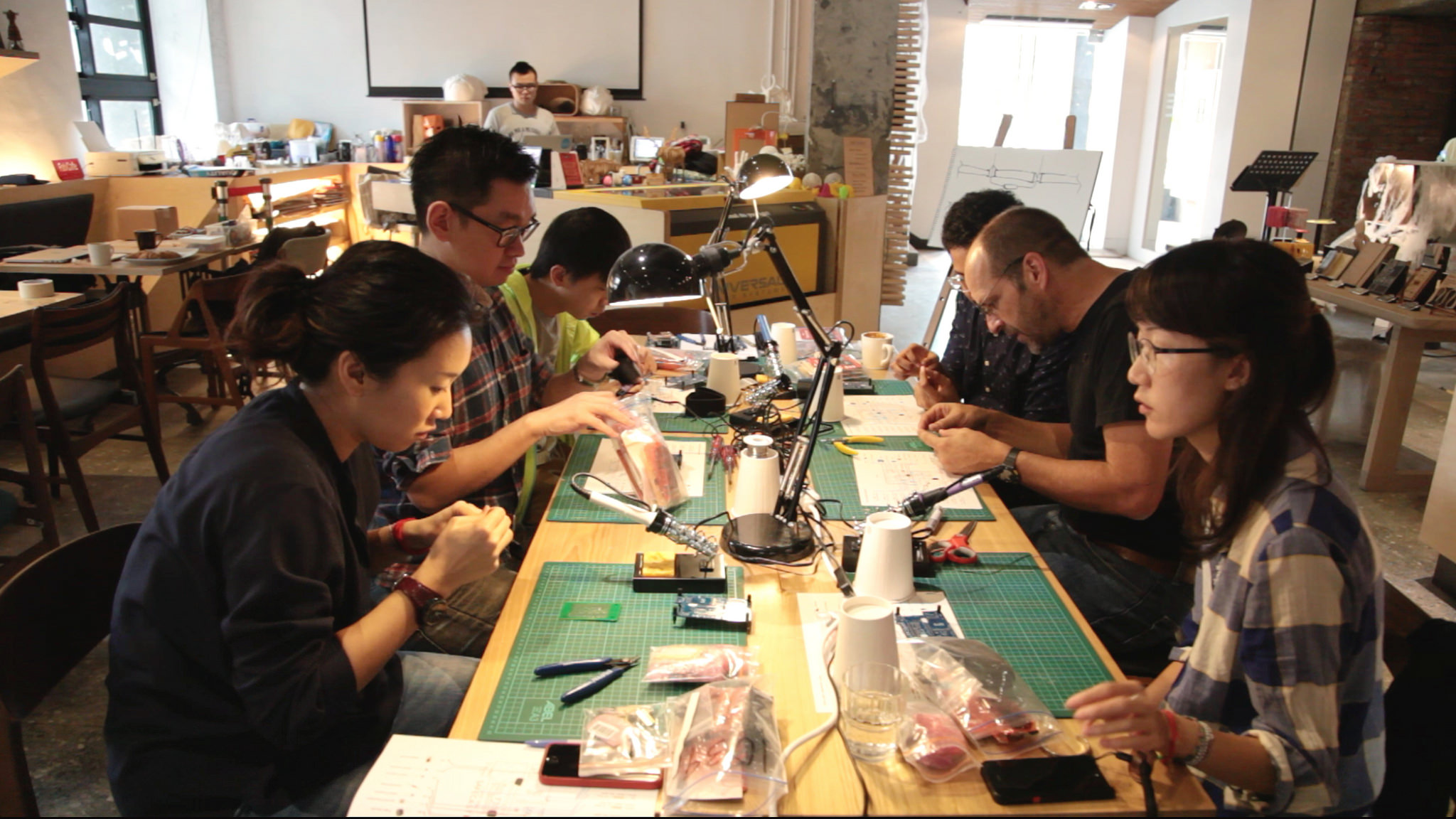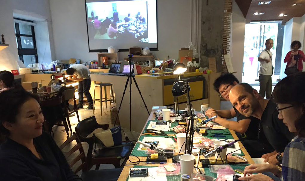In Taipei, the workshop was held at FabCafe Taipei, in Huashan Creative Park. Safecaster Joe Moross traveled from Tokyo to be there as an instructor, and there were 7 participants in all.