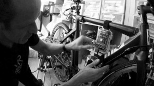 Back in Hikone, YR-Design made the software for interfacing the wheel and sensors with the bGeigie. Temporally using the existing data string as a base. And extending the data string with temperature and humidity fields. We made the interface working on WiFi (Xbee WiFi in AdHoc mode) with an Iphone, so Jun Yamadera could use it on a trade show for Carbon Credits. Also the bike with sensors was used for the introduction of Clif bars in an event organized by Duco delgore with the logo displayed on the wheel.