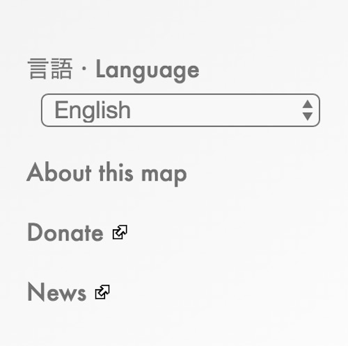 Currently allows the interface to be switched between English and Japanese, with more languages in the works. The interface will change immediately, but the new language setting will not be applied to the Google Maps labels themselves until this page is reloaded.