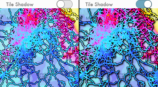Applies a drop shadow to the data points. Primarily intended for screenshots and press images, this can significantly improve contrast between the datapoints and the basemap, but only at a significant performance hit.