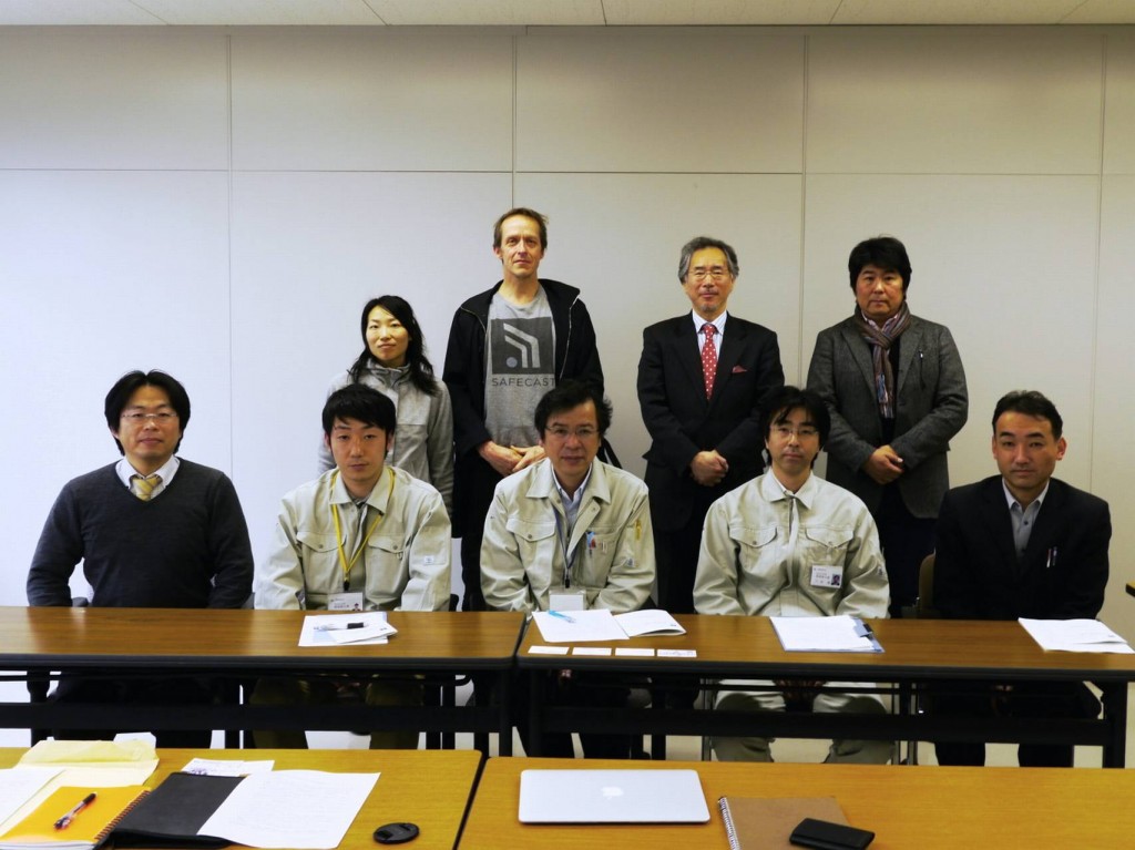 In the back row from left to right are Safecast’s Yuka, Rob Oudendijk and Mr Watanabe.  On the far right in the back row is Mr. Washiyama who is the contact person supporting this effort.