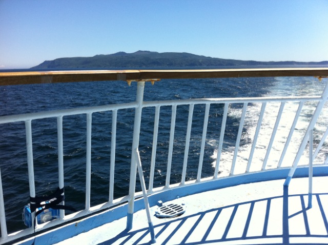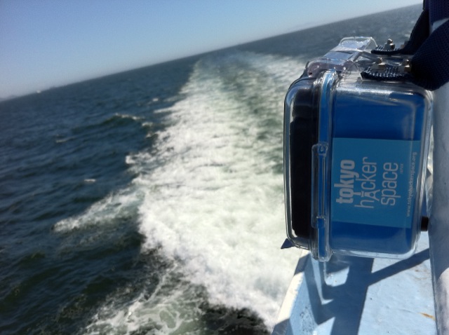 東京に戻る途中、どのような測定値になるか興味があったため、bGeigie をフェリーの船尾最上段のテラスに取り付けてみました。
