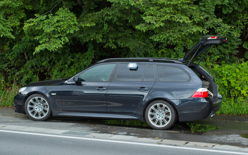 There is a fair amount of traffic with both private cars, tourist buses, and believe it or not: hillclimb-bent bicyclists! (Our own Safecast member Joe Moross told me he has done this bicycle climb a couple of times, so I salute him, and keep on slamming the accelerator of the BMW!)
