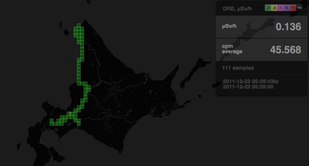 先月、全世界空手道連盟がSafecastのボランティアのプールに飛び込んでくれて、彼らのいくつかの新しい地域が地図上に記され、”Black Belt bGeigie”と呼んでいる特別な目的のために開発した私たちの新しいバージョンのbGeigieのテストを手伝ってくれることを私たちは喜んで発表いたします。私たちはすでに彼らからデータを受け取っており、彼らの札幌の新しい地域が私たちのデータベースにあることをお伝えできることに興奮しています。新しい地点はいつも私たちにとってはエキサイティングであり、通常の放射線レベルの地点はより素晴らしいです。私たちは次のデータ群を楽しみにしておりますし、私たちの地図の空白の地域に対して埋まり続けていくことを楽しみにしております。