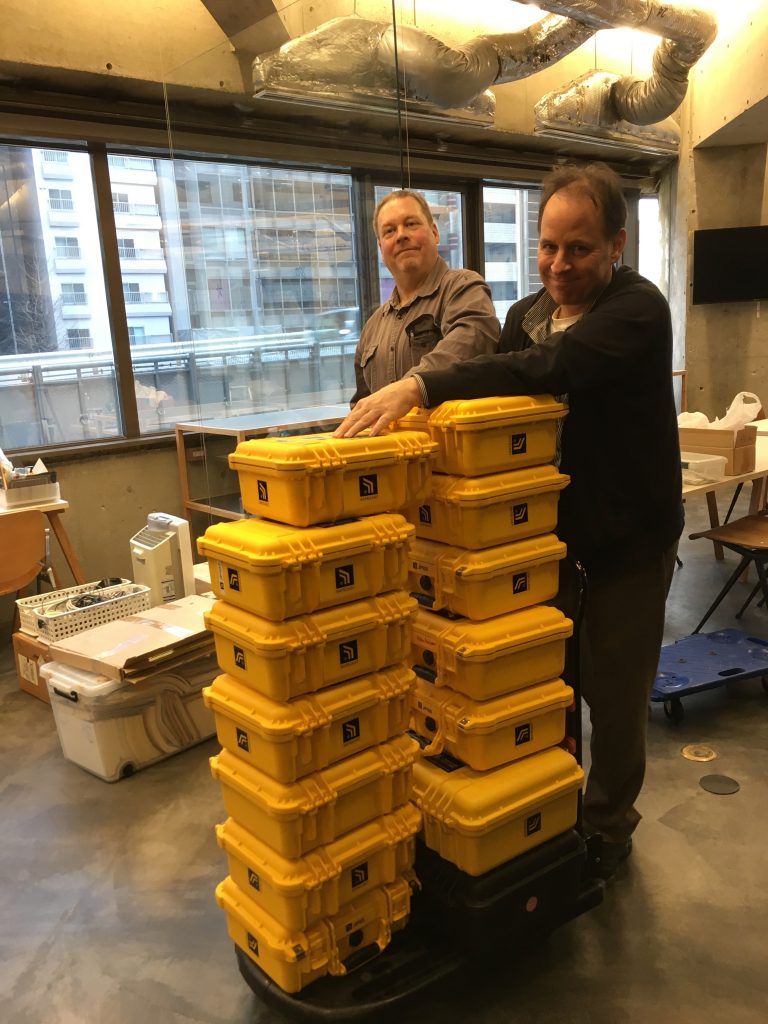 Last week we moved into our brand new office, located on the 3F of the Loftwork “plex” on Dogenzaka, Shibuya. We moved into our previous office almost 5 years ago, and this time the move from the 8F to the 3F was in a way easier (5 floors down) but more involved (more geigers!) The new office is part of a new floor Loftwork has acquired and sports a larger work area for building equipment and has a more efficient storage area for keeping all our geigers and parts well organized. There’s also a space for the “Safecast Museum” where we keep various bGeigies on permanent display. As part of the collaboration with Loftwork and FabCafe, we are excited to continue this great relationship at the new location!